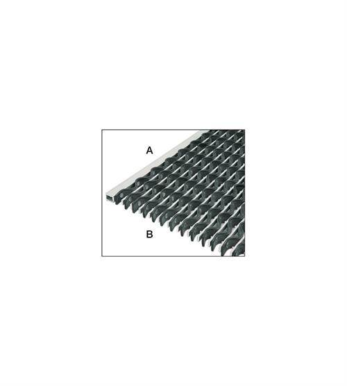 Den klassiske lamelmåtte med bølgede gummilameller sammenholdt af stålvirer. Benyttes i indgangspartier med medium til høj trafik. Leveres efter mål. Leveres i i eloxeret aluminium NB! Skaffevare - ca. 14 dages leveringstid.